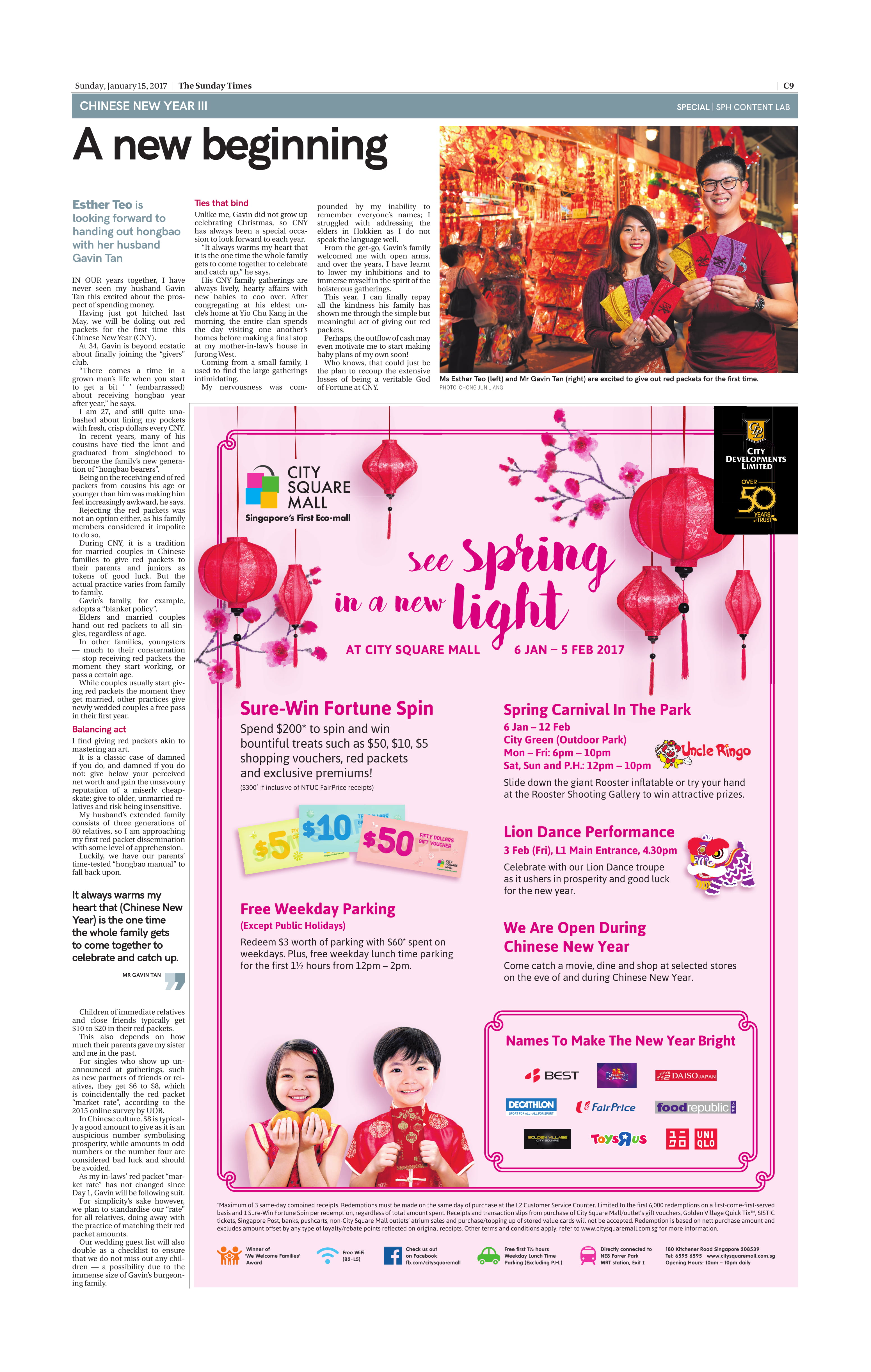 Chinese New Year story on giving angpows for the first time, The Straits Times, Jan 15, 2017 Related Categories: Editorial