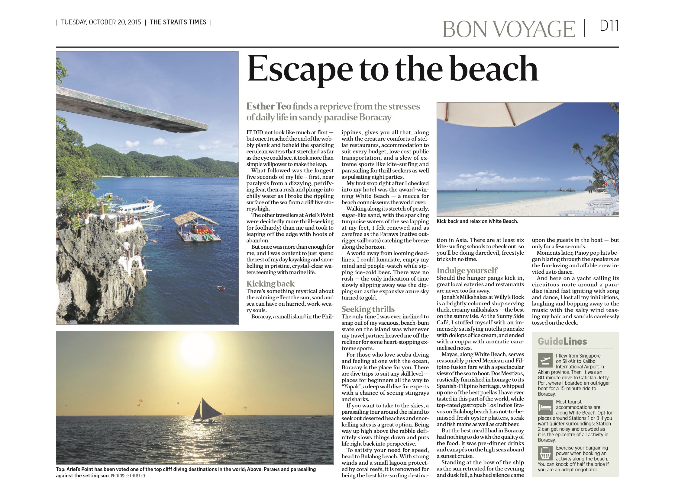 Escape to the beach in Boracay, Bon Voyage, The Straits Times, Oct 20, 2015 Related Categories: Editorial · Travel