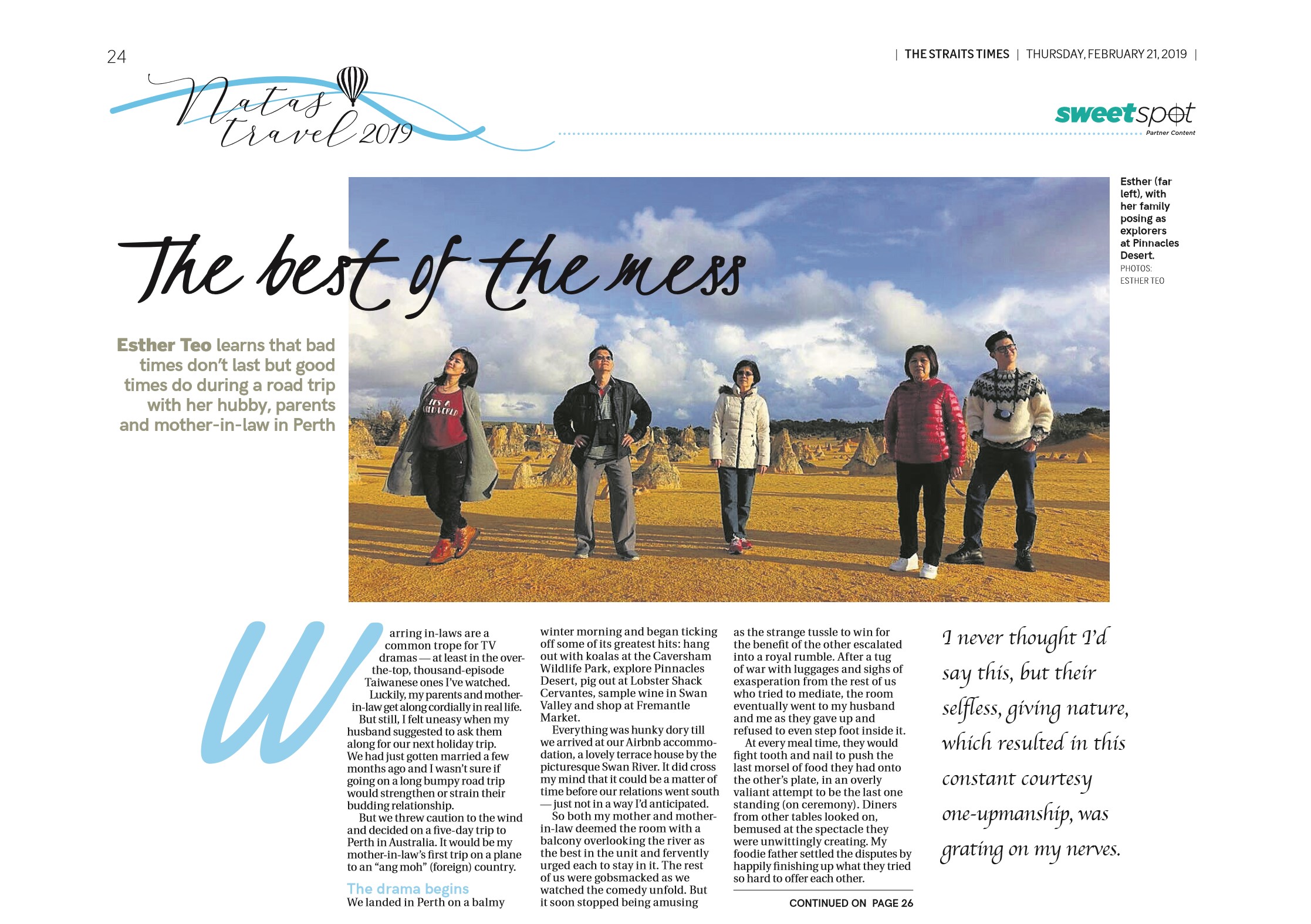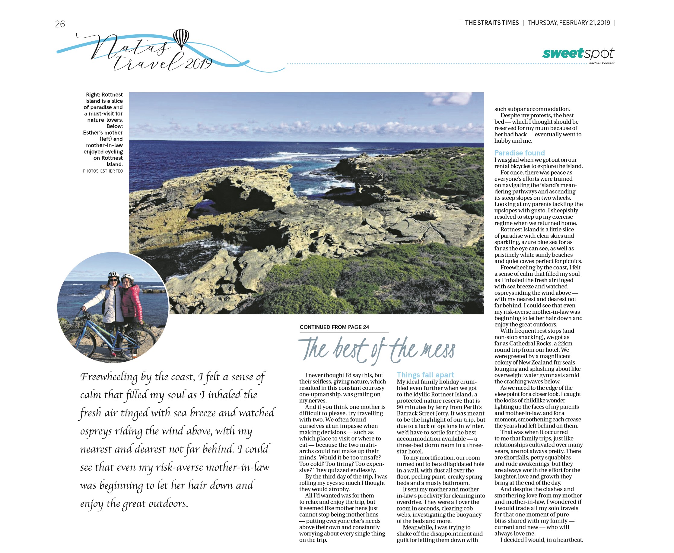 The best of the mess in Perth, NATAS Travel 2019, The Straits Times, Feb 21, 2019 Click here to read it online. Related Categories: Editorial · Parenting · Travel