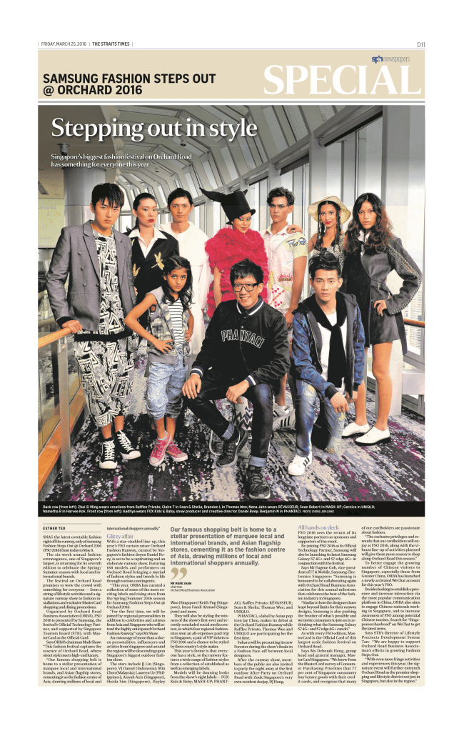 Stepping out in style, Samsung Fashion Steps Out @ Orchard 2016, The Straits Times, March 25, 2016 Related Categories: Editorial · Lifestyle